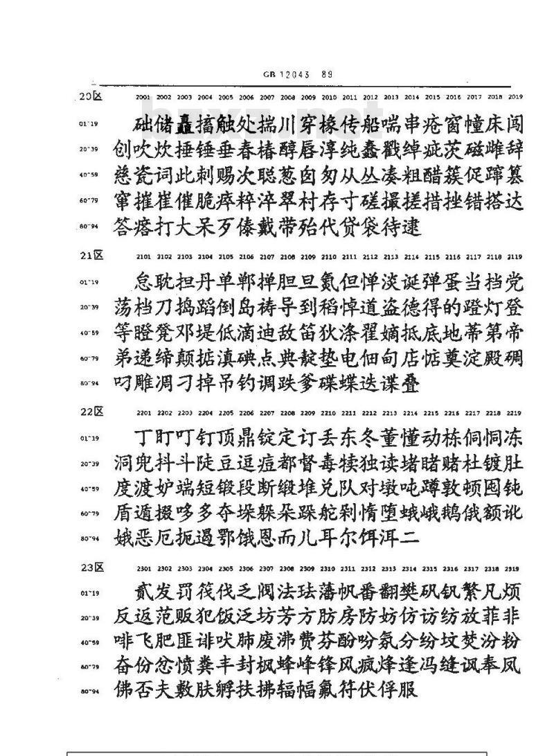 GB2312信息交换用汉学编码孚符集基本集3汉字图形字符