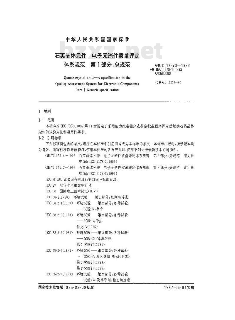 - GB/T 12273-1996 石英晶体元件 电子元器件质量评定体系规范 第1部分:总规范