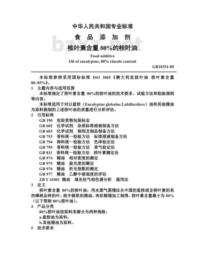 - GB 10351-1989 食品添加剂 桉叶素含量80%的桉叶油