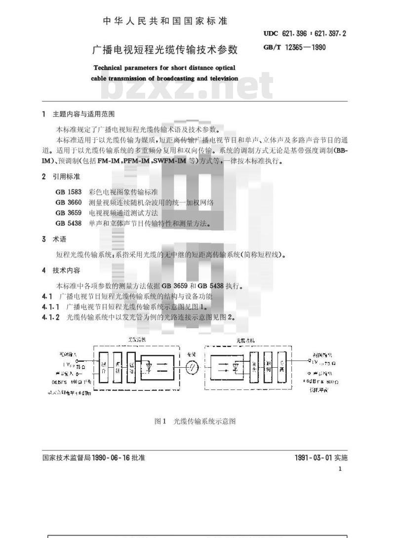 - GB/T 12365-1990 广播电视短程光缆传输技术参数