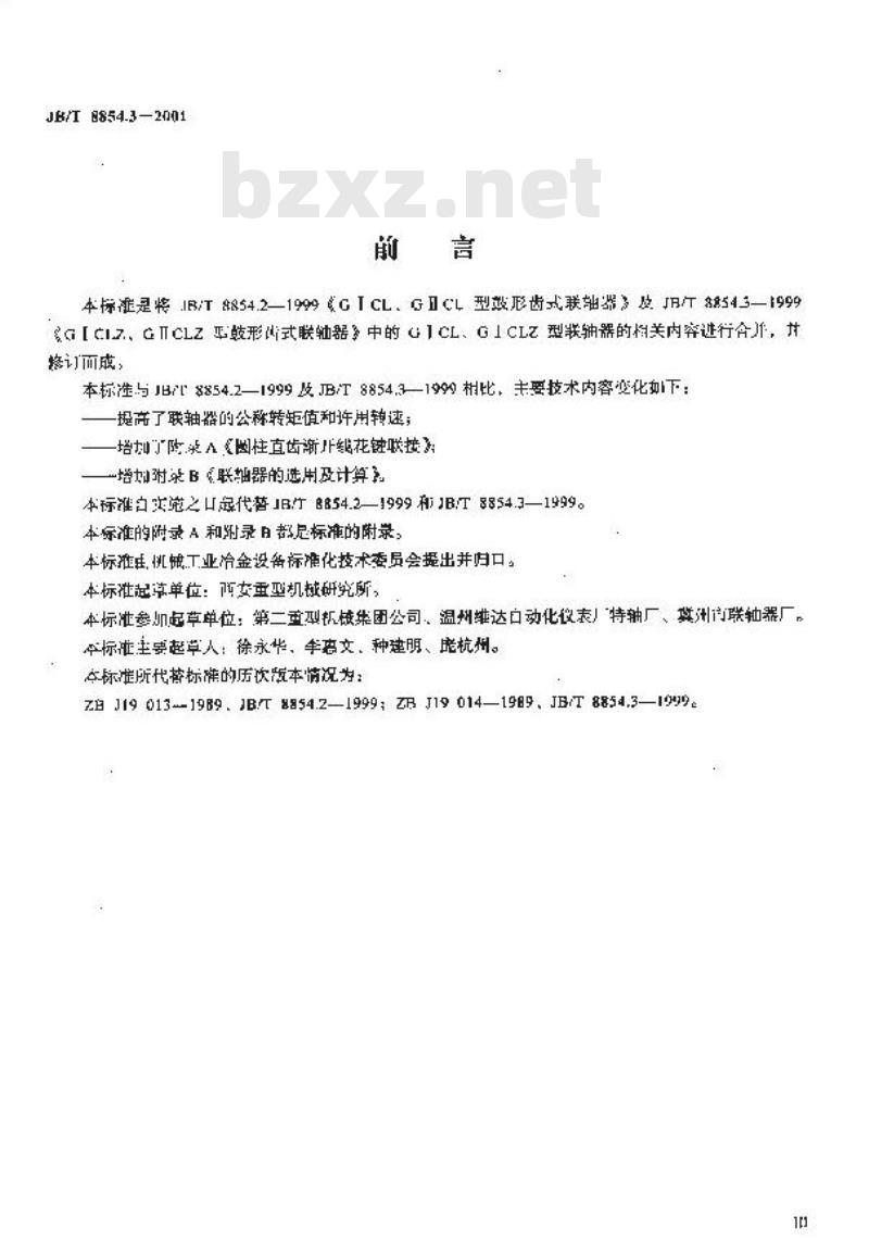 本标准白实范之口起代替1B行B854.2—1999和JB/T8854.3—1999。本标准的附录A和附录月都尼标准的附录:本标准,供糖工业洽金设备标准化技术秀员会握出并归口。本标准起草单位:西变重型机械研究所,本标准参如点草单位:第二重型机械集团公司、温州维达口动化仪表特轴厂、冀洲内联轴器厂,产标主喜起草人!徐永华,手离文,种建明、庞杭州。公标准所代替标蒲的历次版本情况为:ZEJ19013-1989.JB/T8854.21999;ZBJ19014—1989,JB/T8854.3—19991
