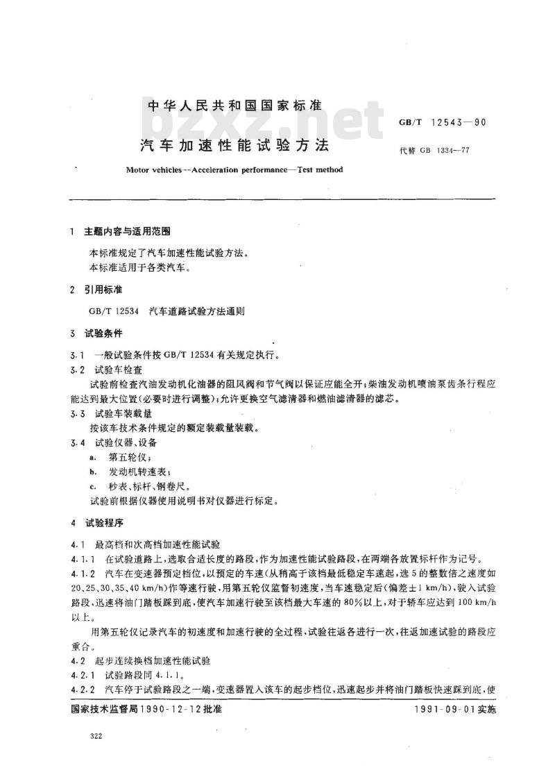 本标准规定了汽车加速性能试验方法。本标准适用于各类汽车。 GB/T 12543-1990 汽车加速性能试验方法 GB/T12543-1990