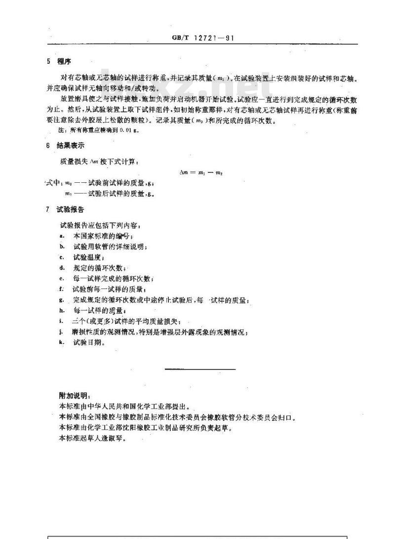 - GB/T 12721-1991 橡胶软管 外胶层耐磨耗性能的测定