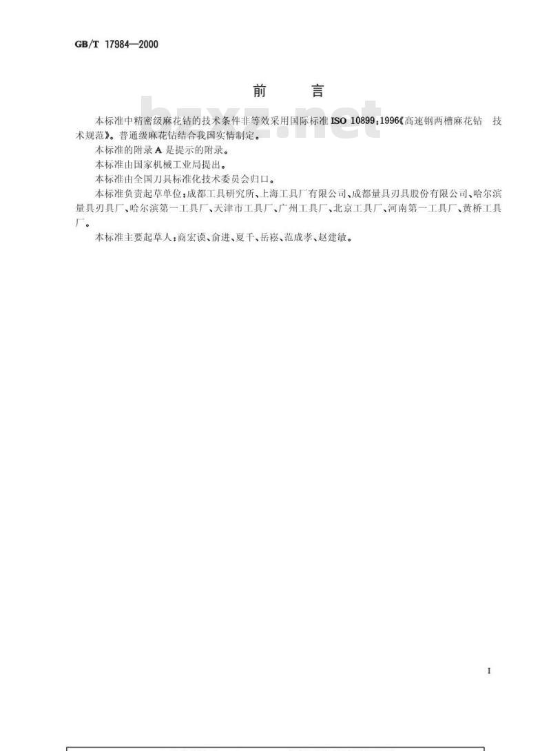 本标准中精密级麻花钻的技术条件非等效采用国际标准ISO10899:1996《高速钢两槽麻花钻技术规范》。普通级麻花钻结合我国实情制定。本标准的附录A是提示的附录。