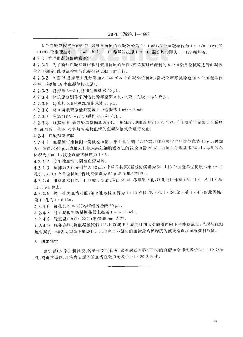 - GB/T 17999.1-1999 SPF鸡 红细胞凝集抑制试验