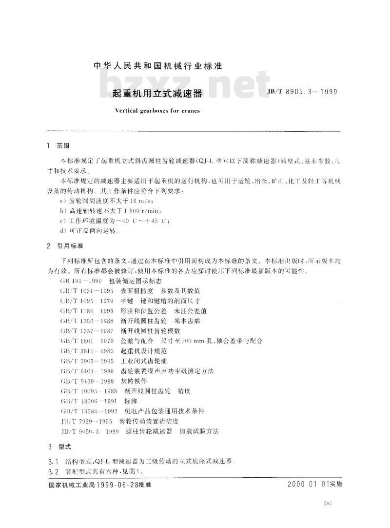 JB/T 8905.3-1999 JB/T 8905.3-1999 起重机用立式减速器 JB/T8905.3-1999