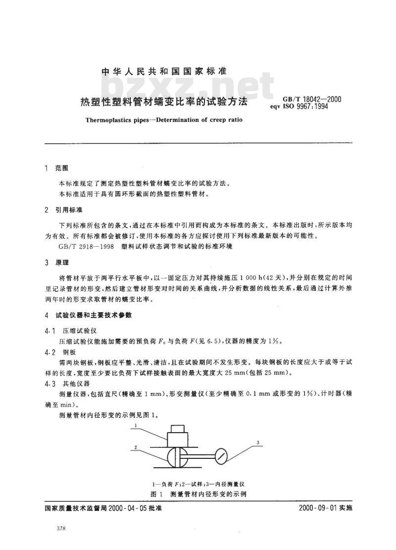 - GB/T 18042-2000 热塑性塑料管材蠕变比率的试验方法