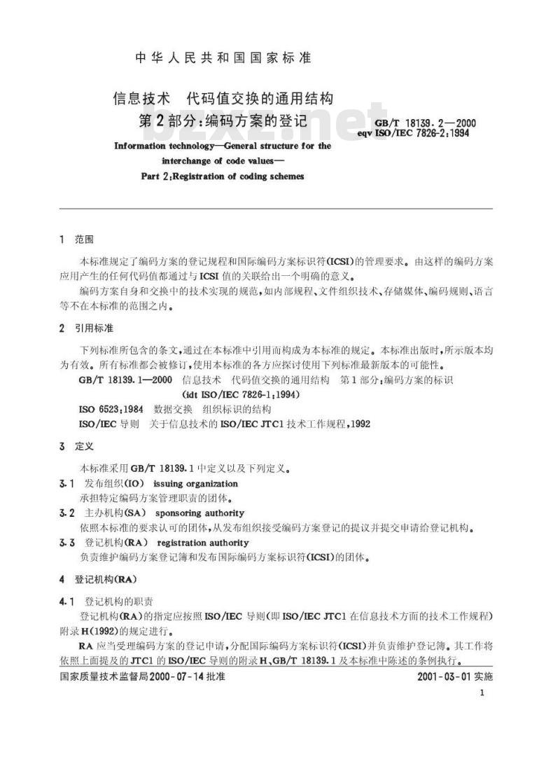 信息技术代码值交换的通用结构第2部分:编码方案的登记下载标准就来标准下载网