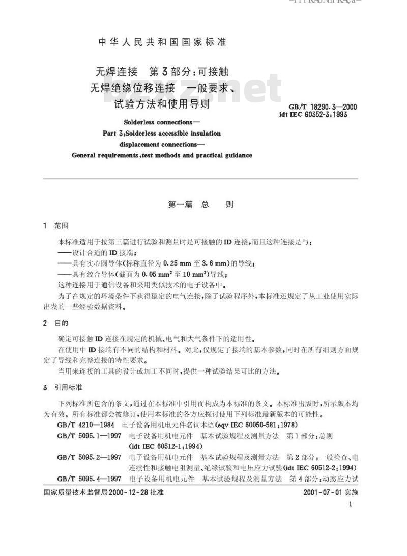 - GB/T 18290.3-2000 无焊连接 第3部分:可接触无焊绝缘位移连接 一般要求、试验方法和使用导则