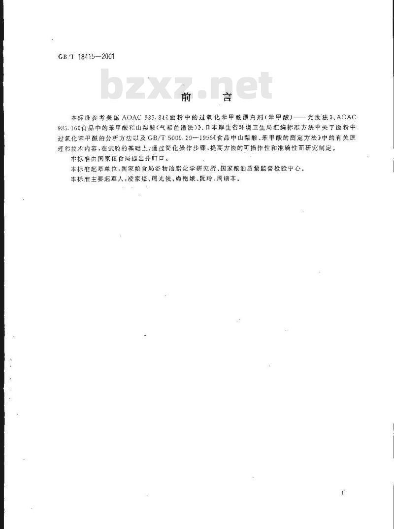 - GB/T 18415-2001 小麦粉中过氧化苯甲酰的测定方法