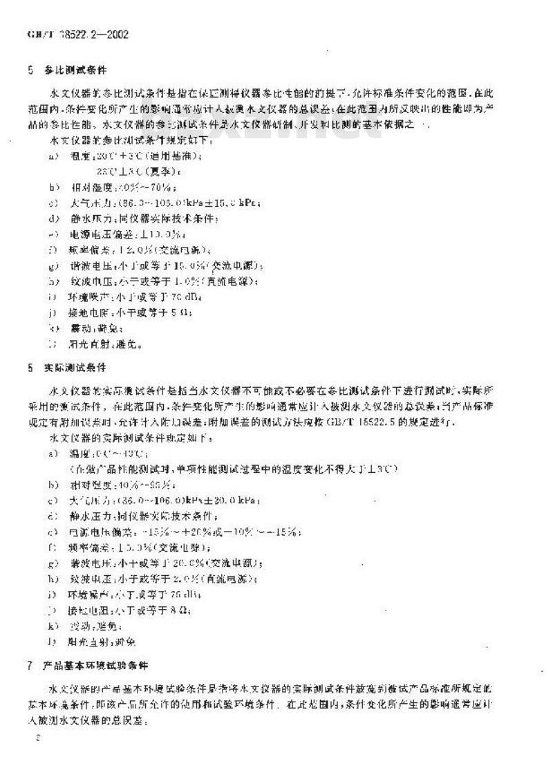 B/T18522的术部分规定了水文器在确定参比性能时的参工作条件范用。参比工作条件包挤标准条件、参比酬试条件,实际划试条件利产品基本环境试验条件:车部分适州十各种类单的水文议器,2规范性引用文件