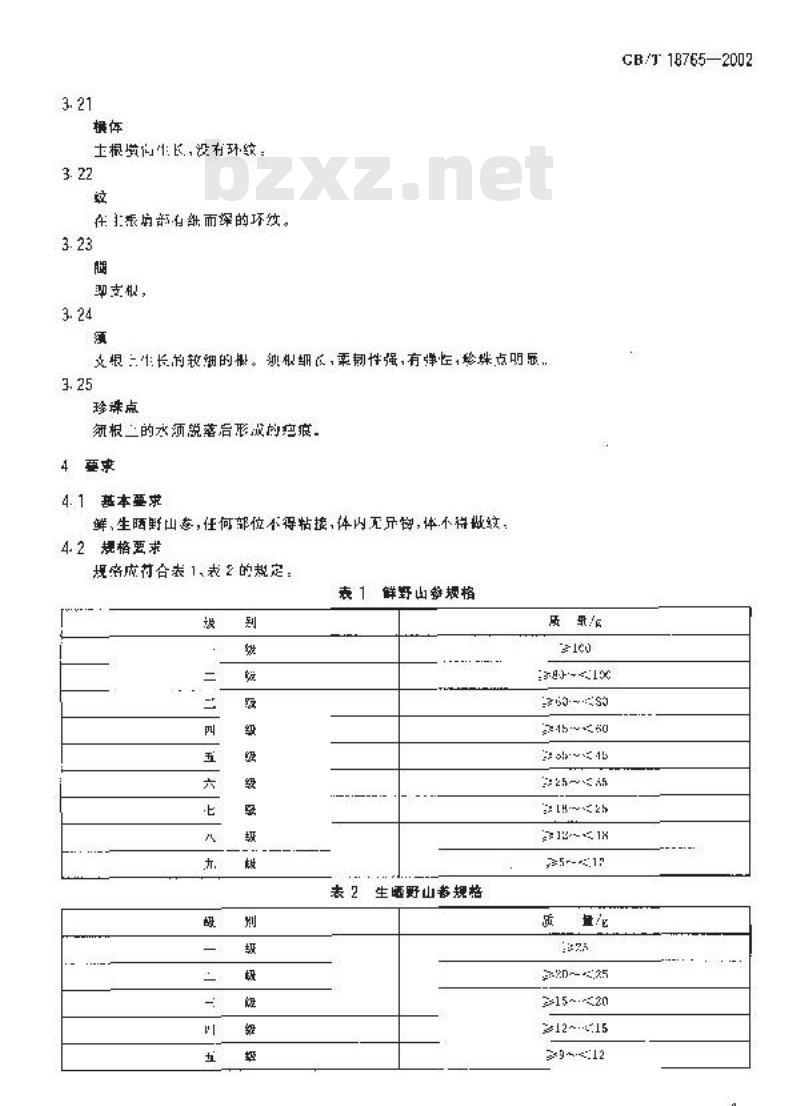 - GB/T 18765-2002 野山参分等质量