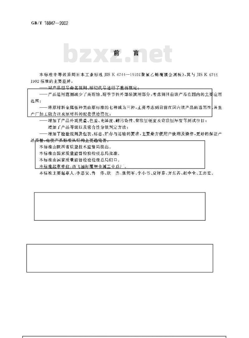 - GB/T 18847-2002 聚氯乙烯覆膜金属板