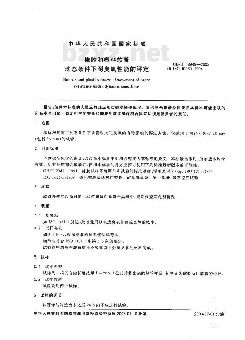 - GB/T 18949-2003 橡胶和塑料软管 动态条件下耐臭氧性能的评定