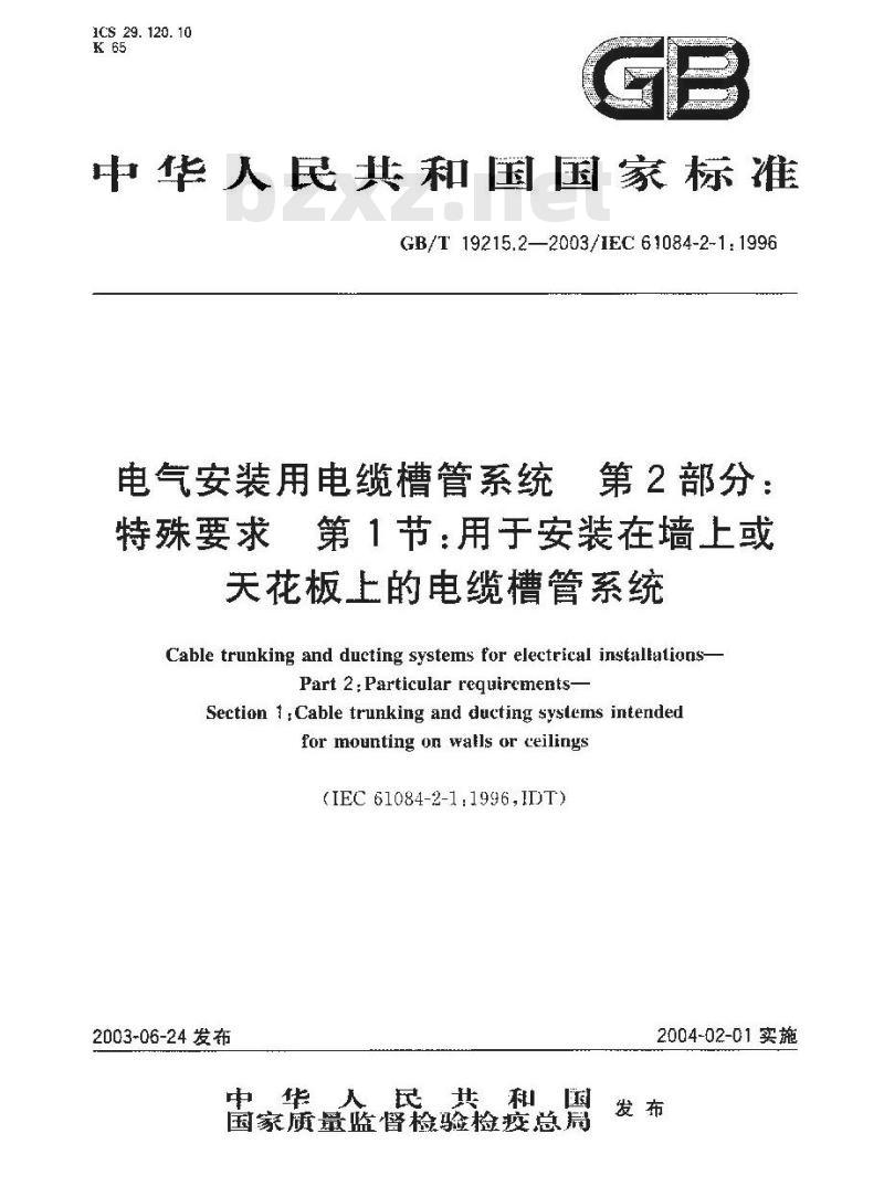GB/T 19215.2—2003/1EC 61084-2-1:1996电气安装用电缆槽管系统