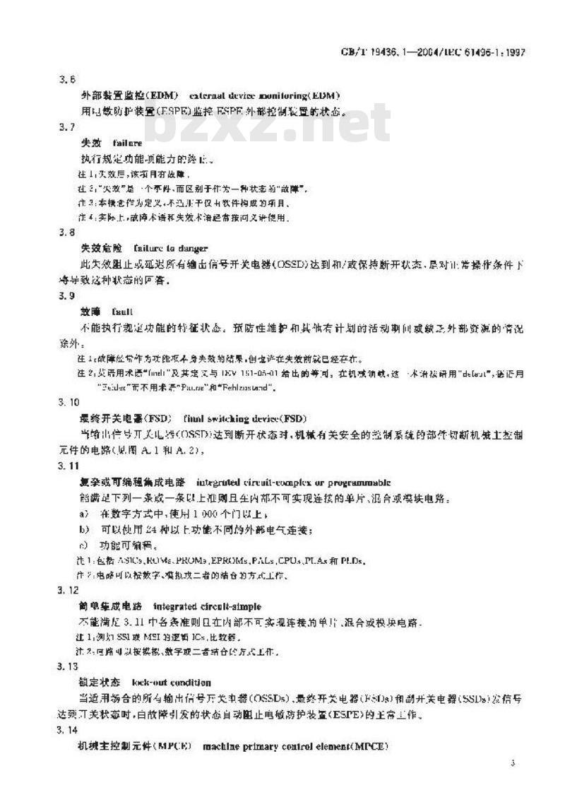机城主控制元件(MPc:E)machlneprimaryconirolelenent(MrCE)GD/T19436.12004/YEC61496-4.1997自接整制机械止常运行的电驱动元件,当机版被起动或停上运行时,定通向运行的最运统元件,