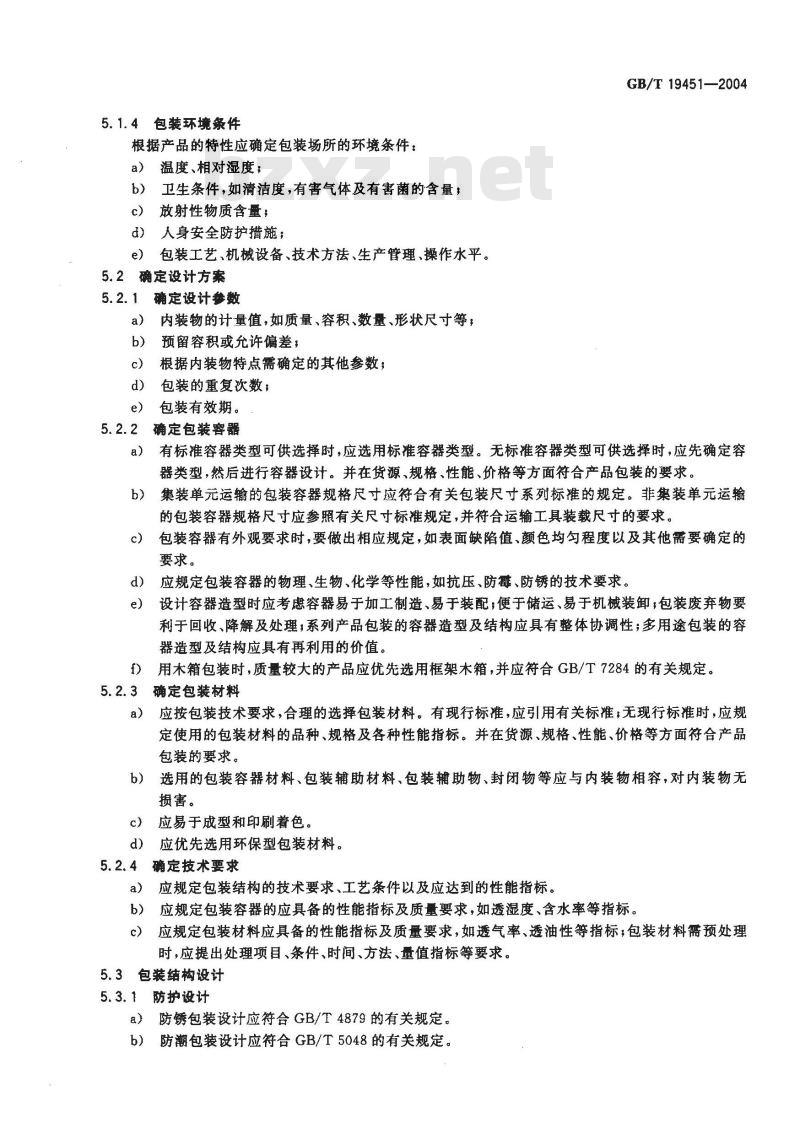 a)防锈包装设计应符合GB/T4879的有关规定。b)防潮包装设计应符合GB/T5048的有关规定。GB/T 19451—2004