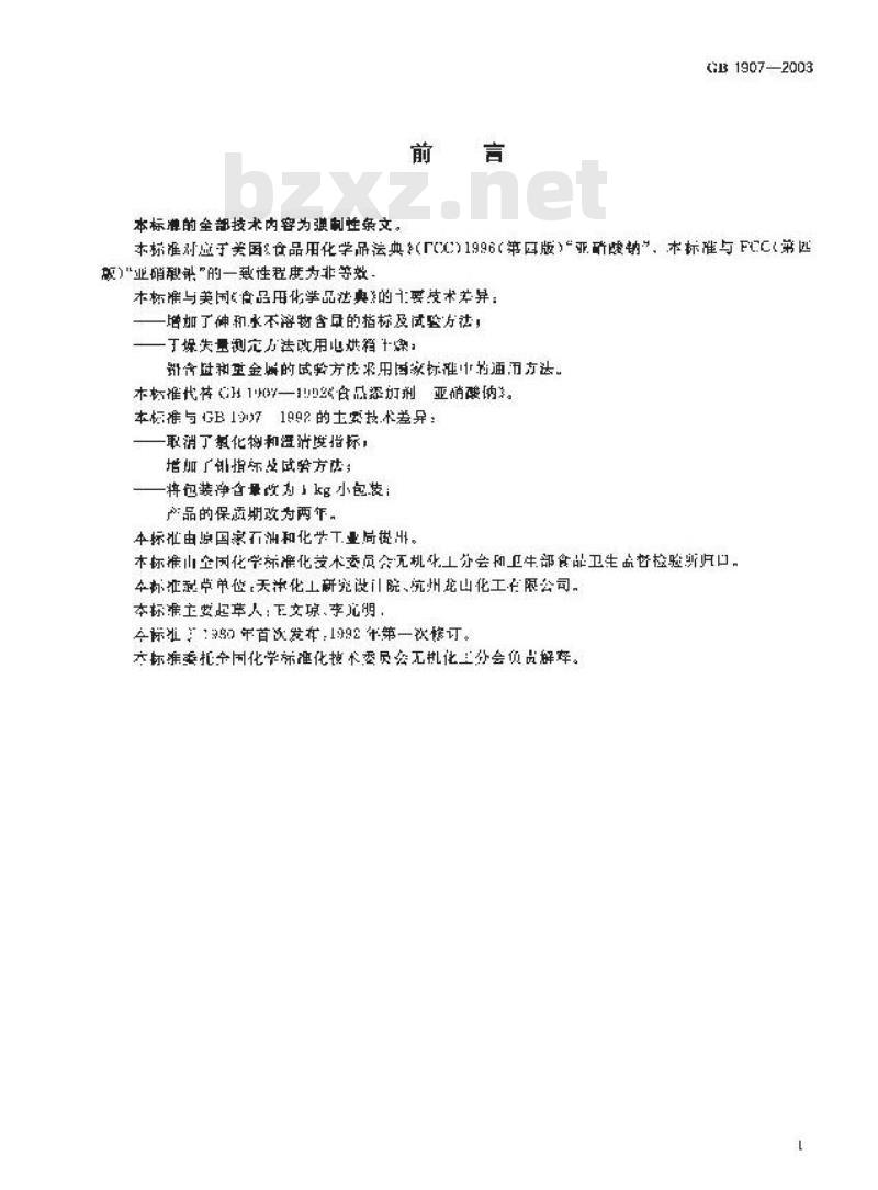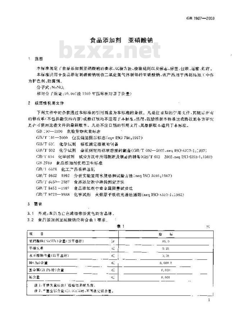 - GB 1907-2003 食品添加剂 亚硝酸钠
