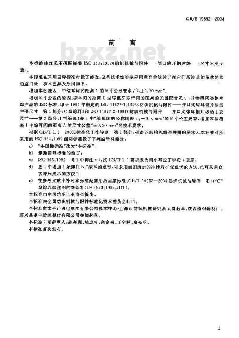 - GB/T 19552-2004 纺织机械与附件 闭口综耳钢片综 尺寸