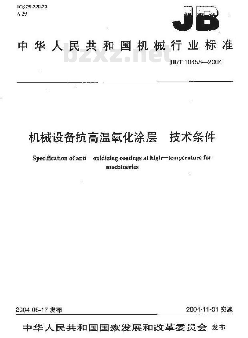 - JB/T 10458-2004 机械设备抗高温氧化涂层 技术条件