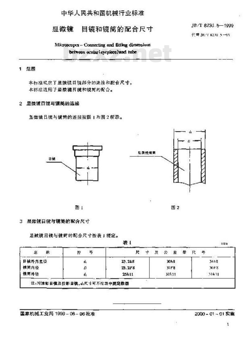 - JB/T 8230.5-1999 显微镜 目镜和镜筒的配合尺寸