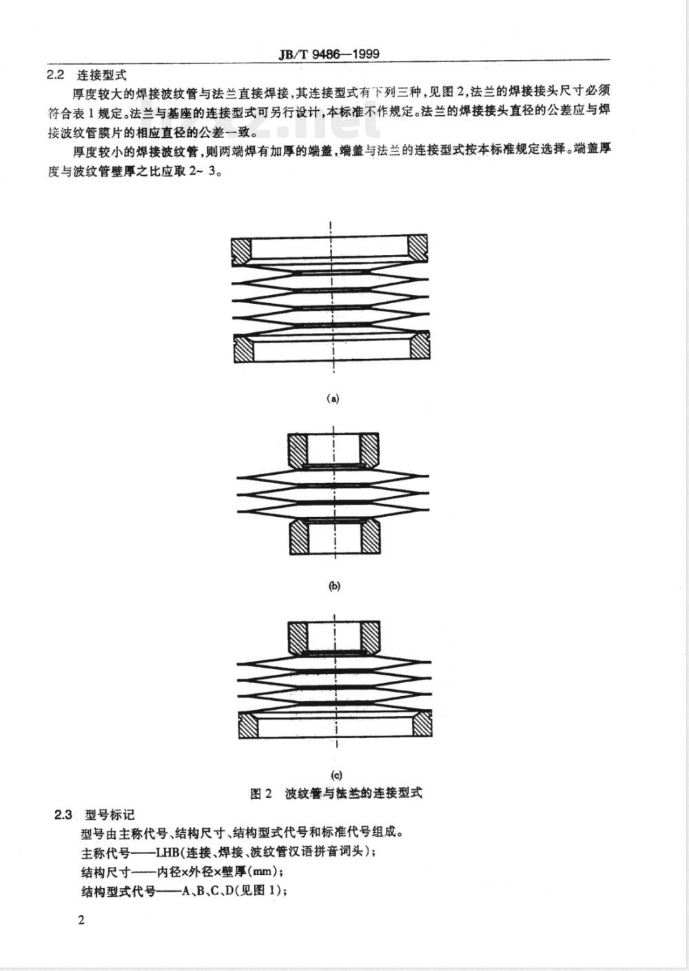 型号由主称代号、结构尺寸、结构型式代号和标准代号组成。LHB(连接、焊接、波纹管汉语拼音词头);主称代号-