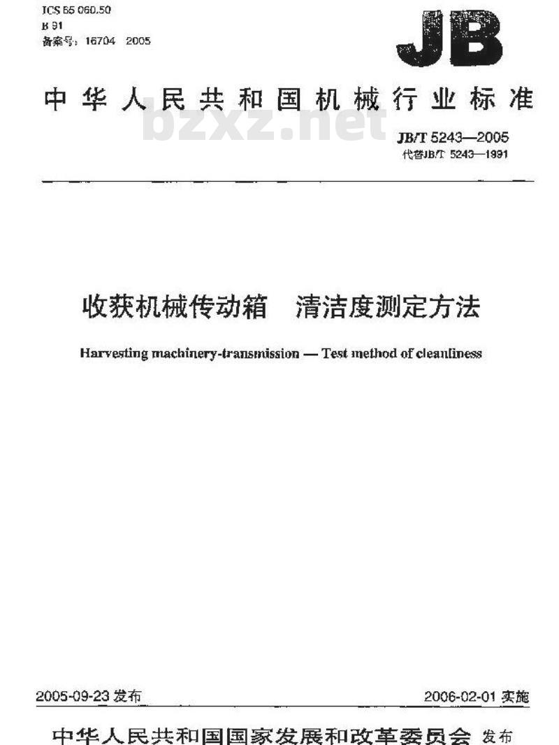 - JB/T 5243-2005 收获机械传动箱 清洁度测定方法