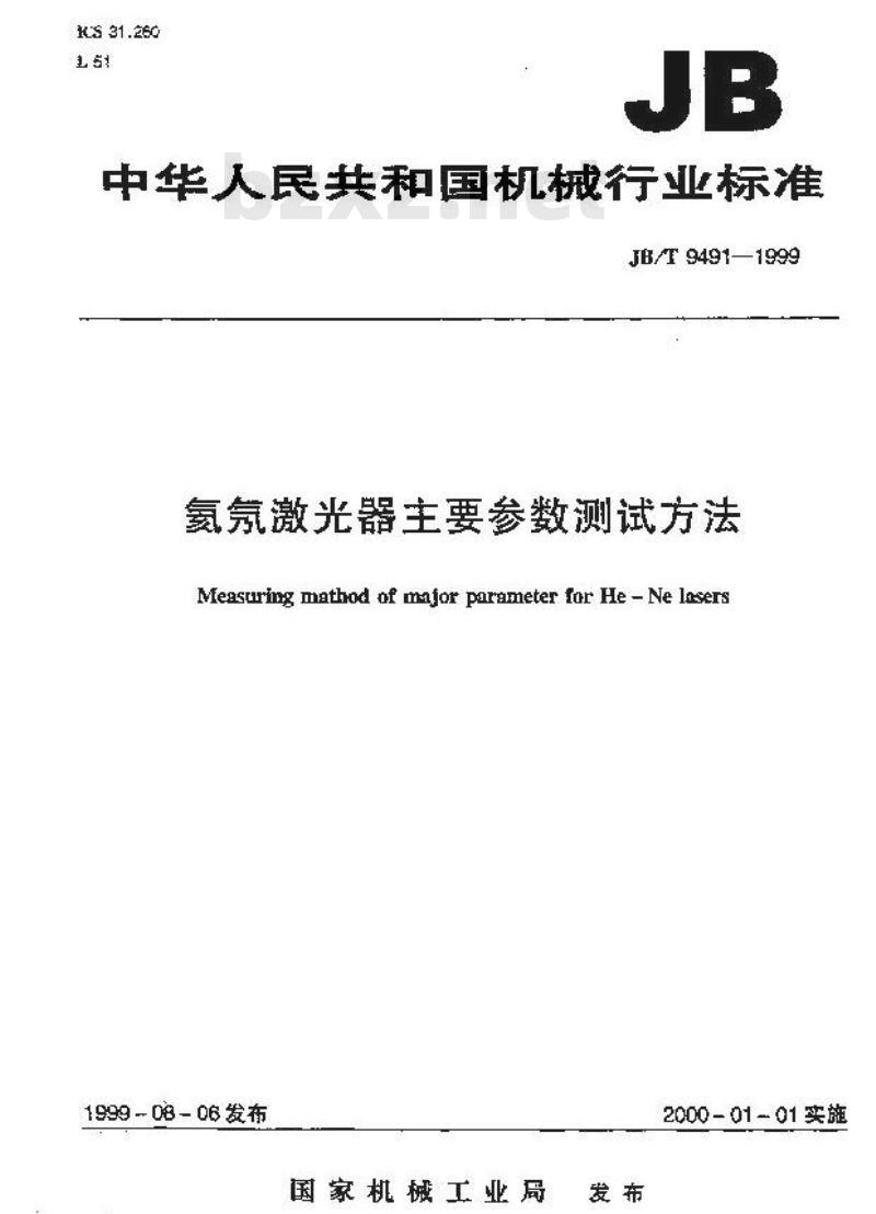 - JB/T 9491-1999 氦氖激光器 主要参数 测试方法