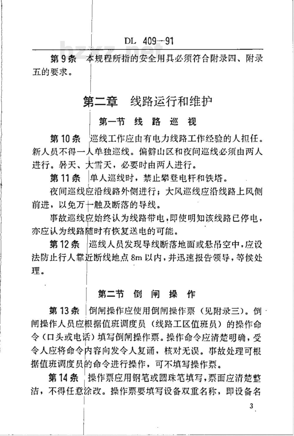 - DL 409-1991 电业安全工作规程(电力线路部分)