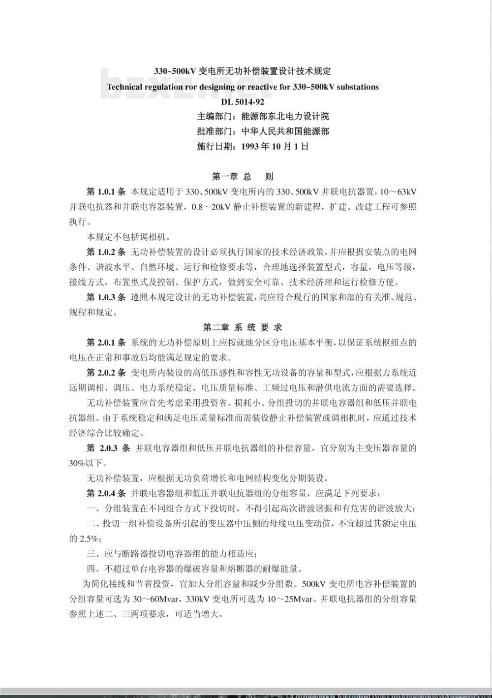 - DL 5014-1992 (330~500)kV变电所无功补偿装置设计技术规定