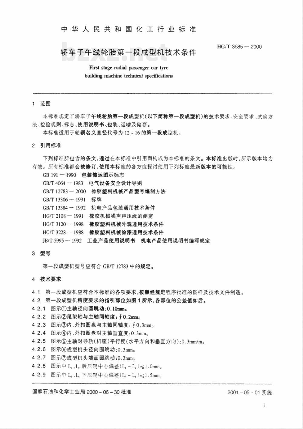 - HG/T 3685-2000 轿车子午线轮胎第一段成型机技术条件