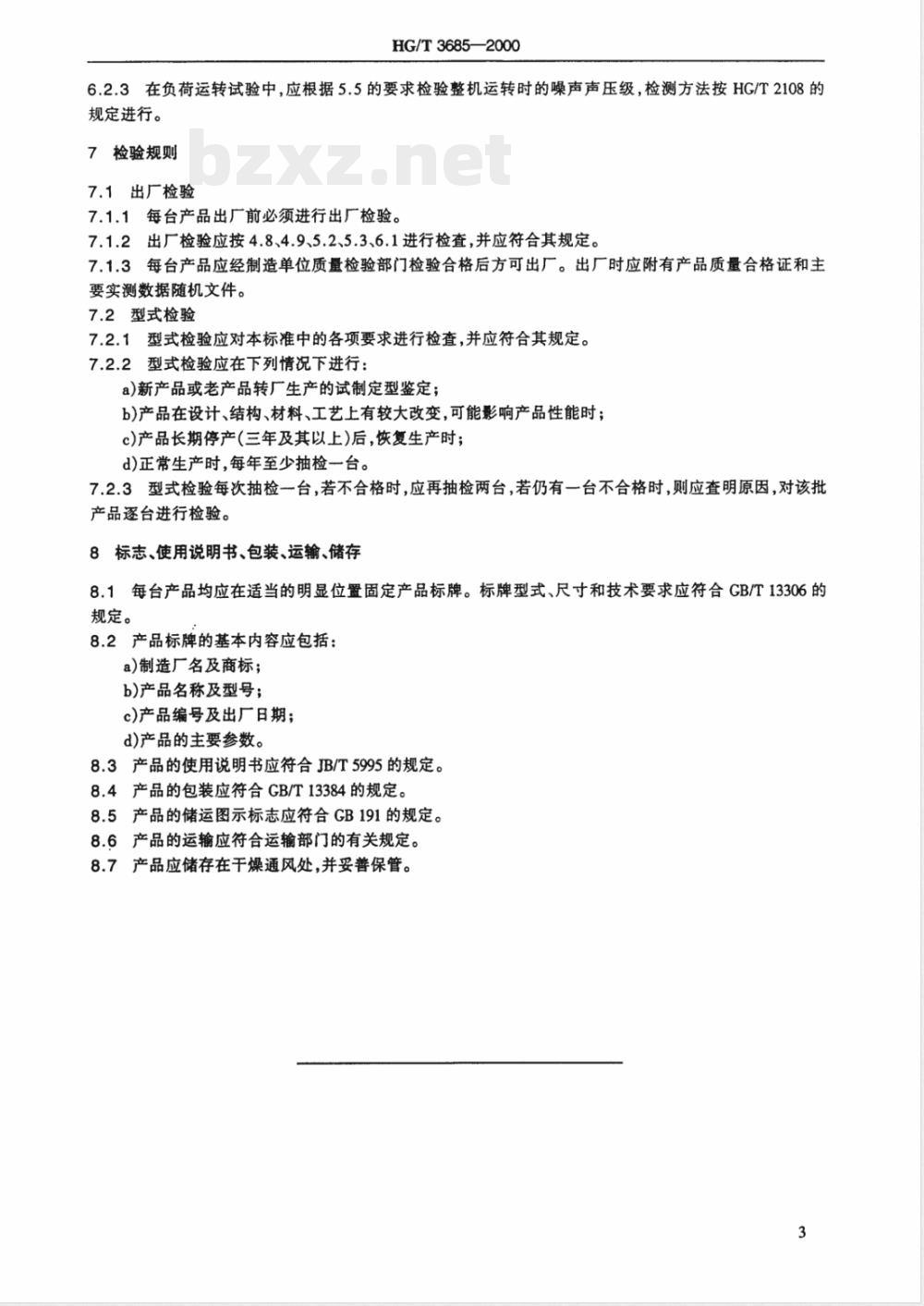 6.2.3在负荷运转试验中,应根据5.5的要求检验整机运转时的噪声声压级,检测方法按HG/T2108的规定进行。