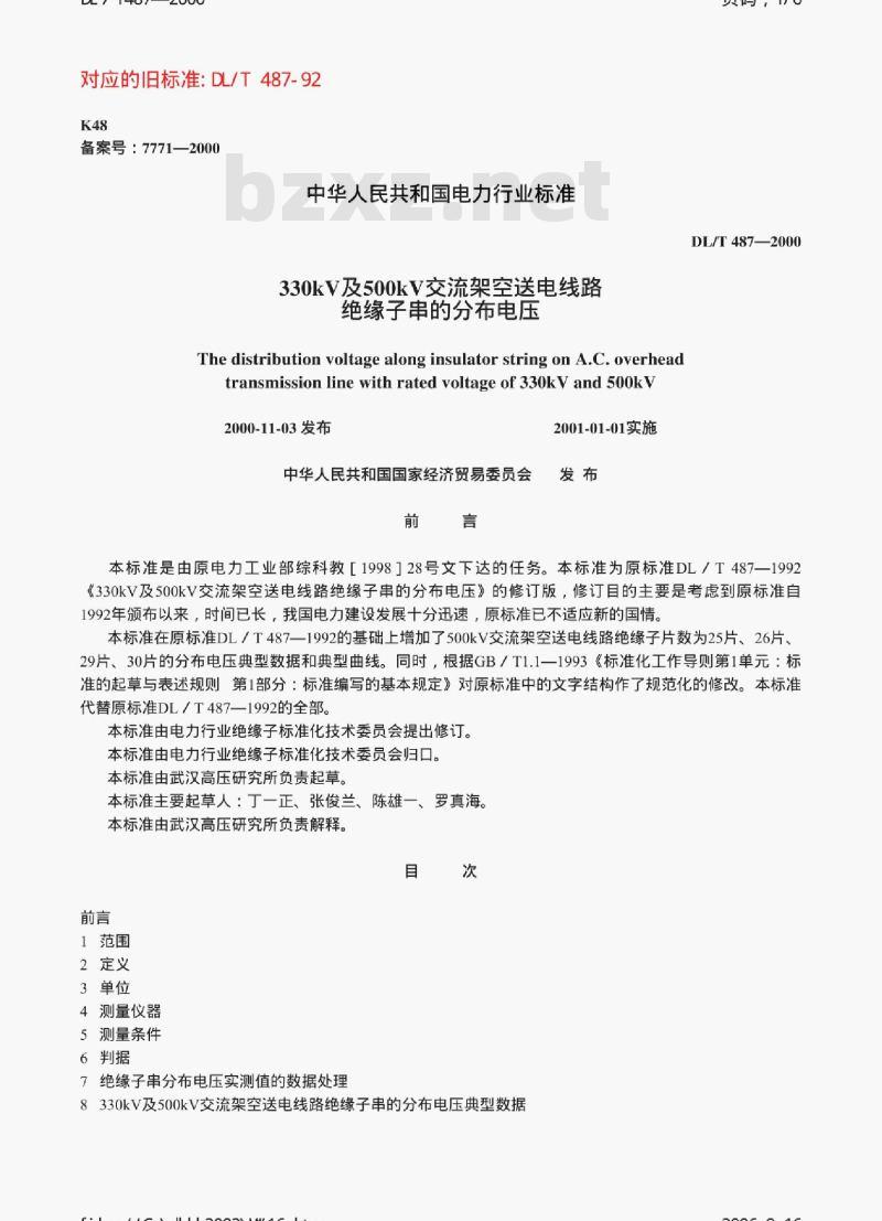 - DL/T 487-2000 330kV及500kV交流架空送电线路绝缘子串的分布电压