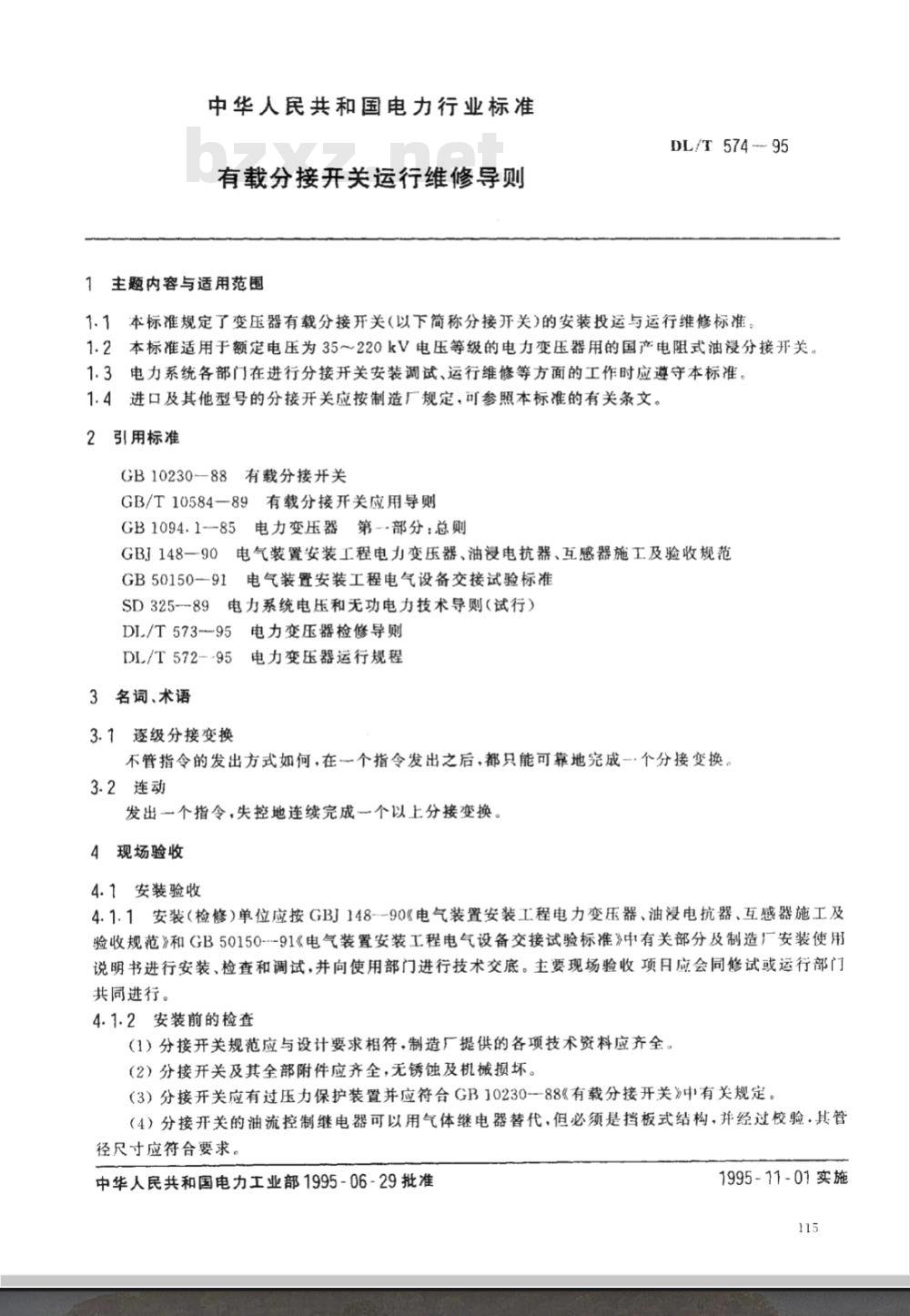 - DL/T 574-1995 有载分接开关运行维修导则
