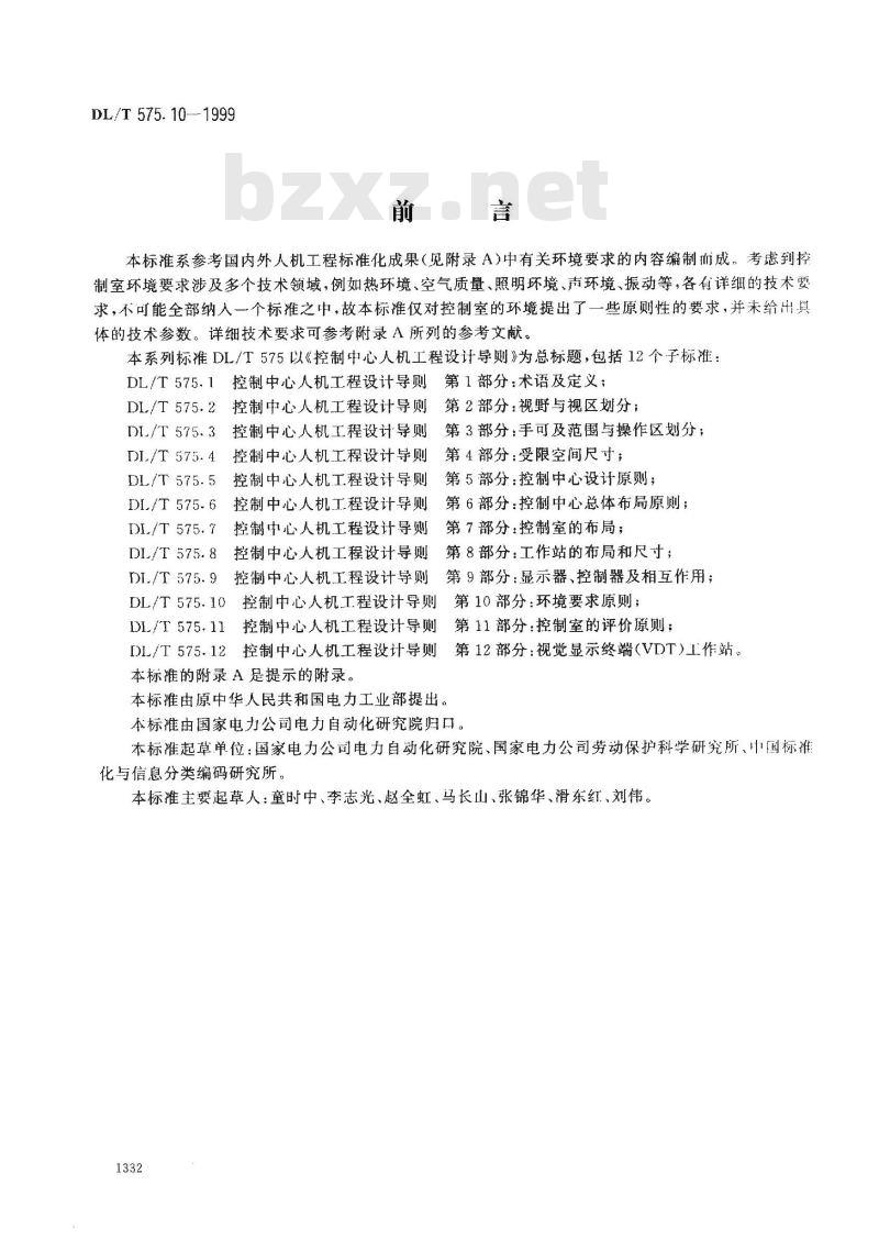 本标准由原中华人民共和国电力工业部提出。第11部分:控制室的评价原则;第12部分:视觉显示终端(VDT)1作站,本标准由国家电力公司电力自动化研究院归口。本标准起草单位:国家电力公司电力自动化研究院、国家电力公司劳动保护科学研究所、中国标准化与信息分类编码研究所。