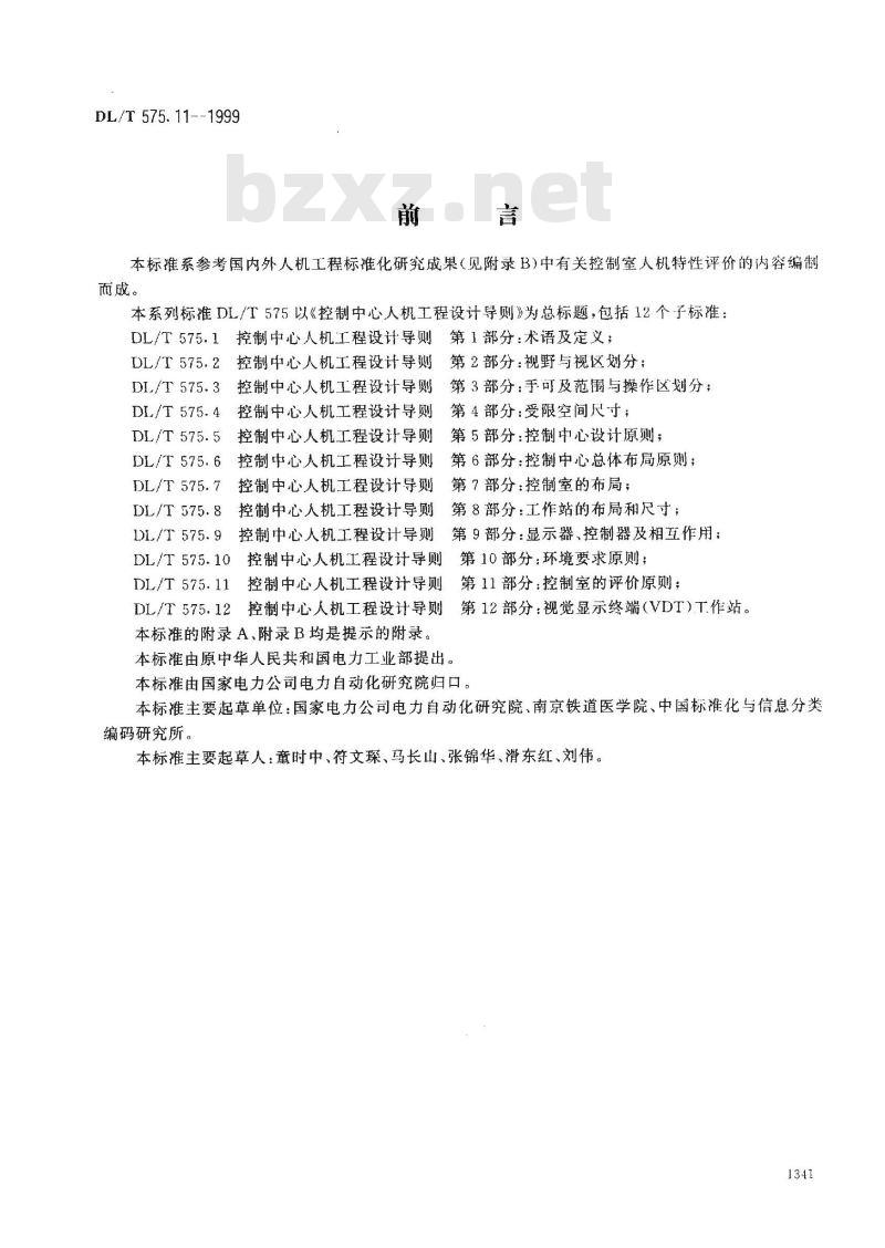 DL/T575.12控制中心人机工程设计导则第12部分:视觉显示终端(VDT)T作站。本标准的附录A、附录B均是提示的附录。本标准由原中华人民共和国电力工业部提出。本标准由国家电力公司电力自动化研究院归口。本标准主要起草单位:国家电力公司电力自动化研究院、南京铁道医学院、中国标准化与信息分类编码研究所。