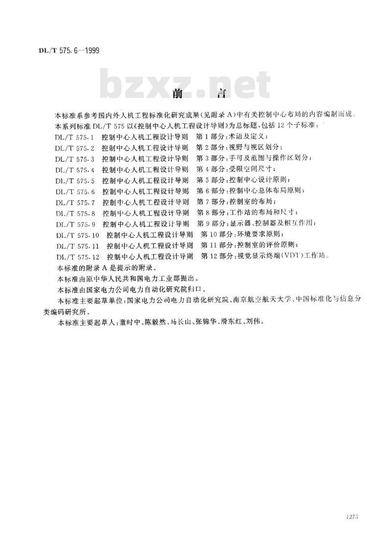 本标雄由原中华人民共和国电力工业部提出。第11部分:控制室的评价原则;第12部分:视觉显示终端(VDT)I作站本标准由国家电力公司电力自动化研究院归口。本标准主要起草单位:国家电力公司电力自动化研究院、南京航空航天大学、中国标准化与信息分类编码研究所。