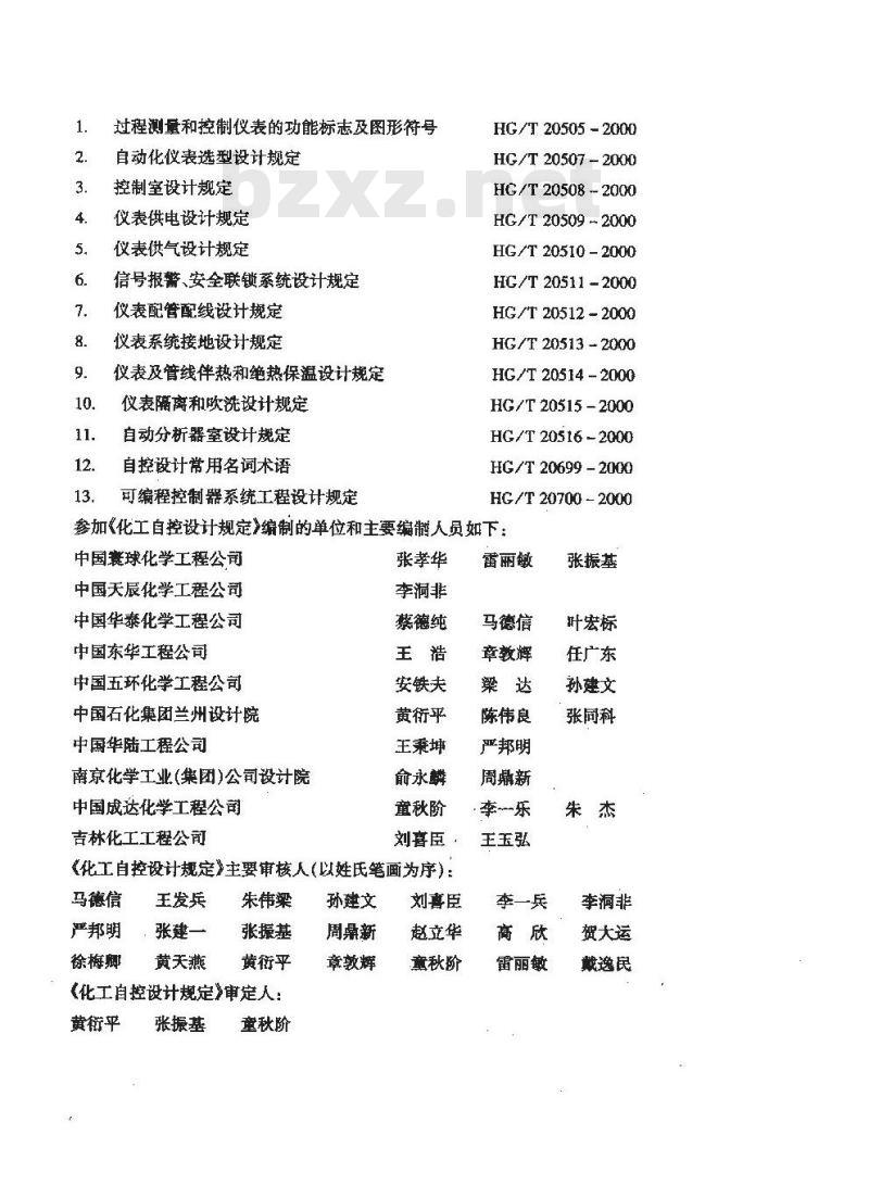 《化工自控设计规定》主要审核人(以姓氏笔画为序):马德信