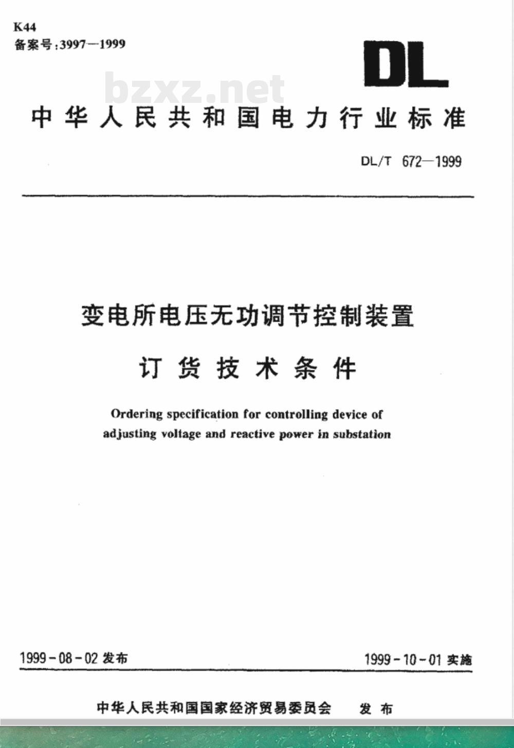 - DL/T 672-1999 变电所电压无功调节控制装置订货技术条件