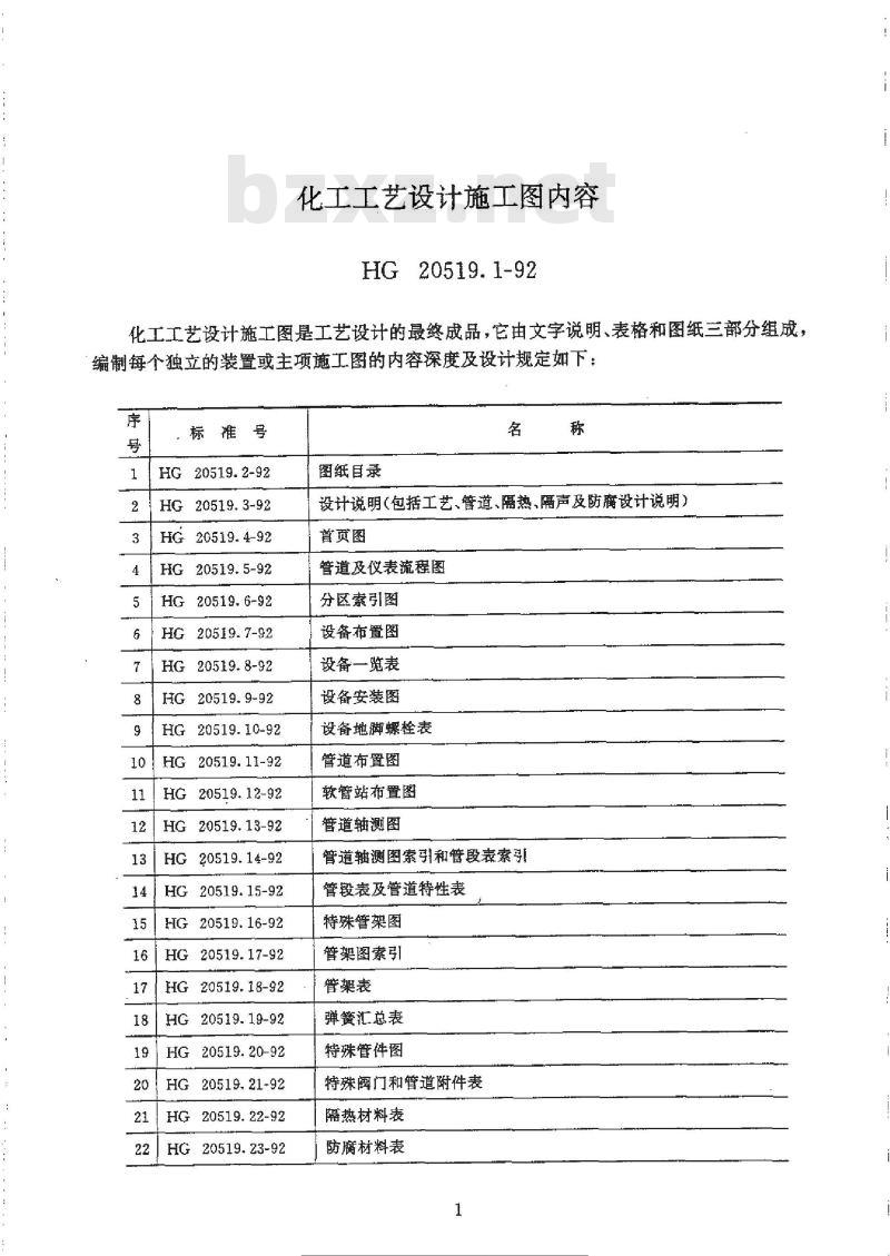 - HG/T 20519.1-1992 化工工艺设计施工图内容
