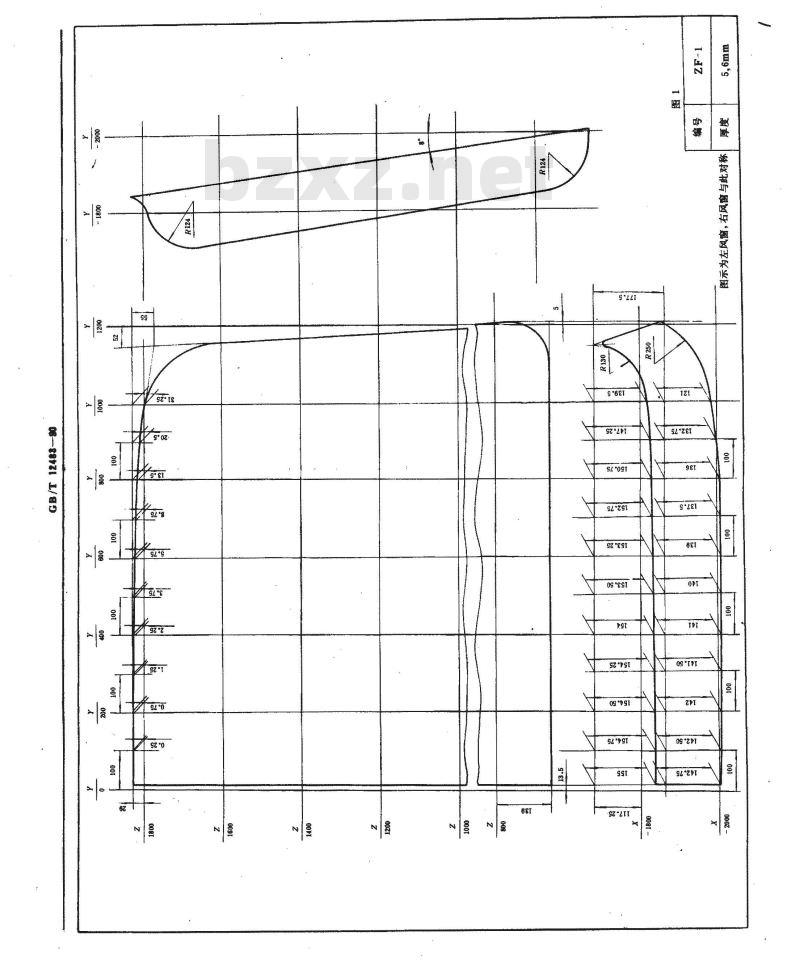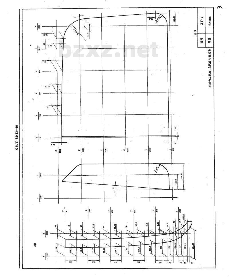 4.1.1车型间可以互相选用。风窗和后窗也可以互相选用。4.1.2对全景玻璃,可以在靠近基准乙平面的一边截去部分后选用,对半景玻璃。可在Z向靠近基准Z平面和Y向靠近基准Y平面一一边截去一部分后选用,但截去的边宽必须是25m的整数倍。国家技术监督局1990 09~08批准126