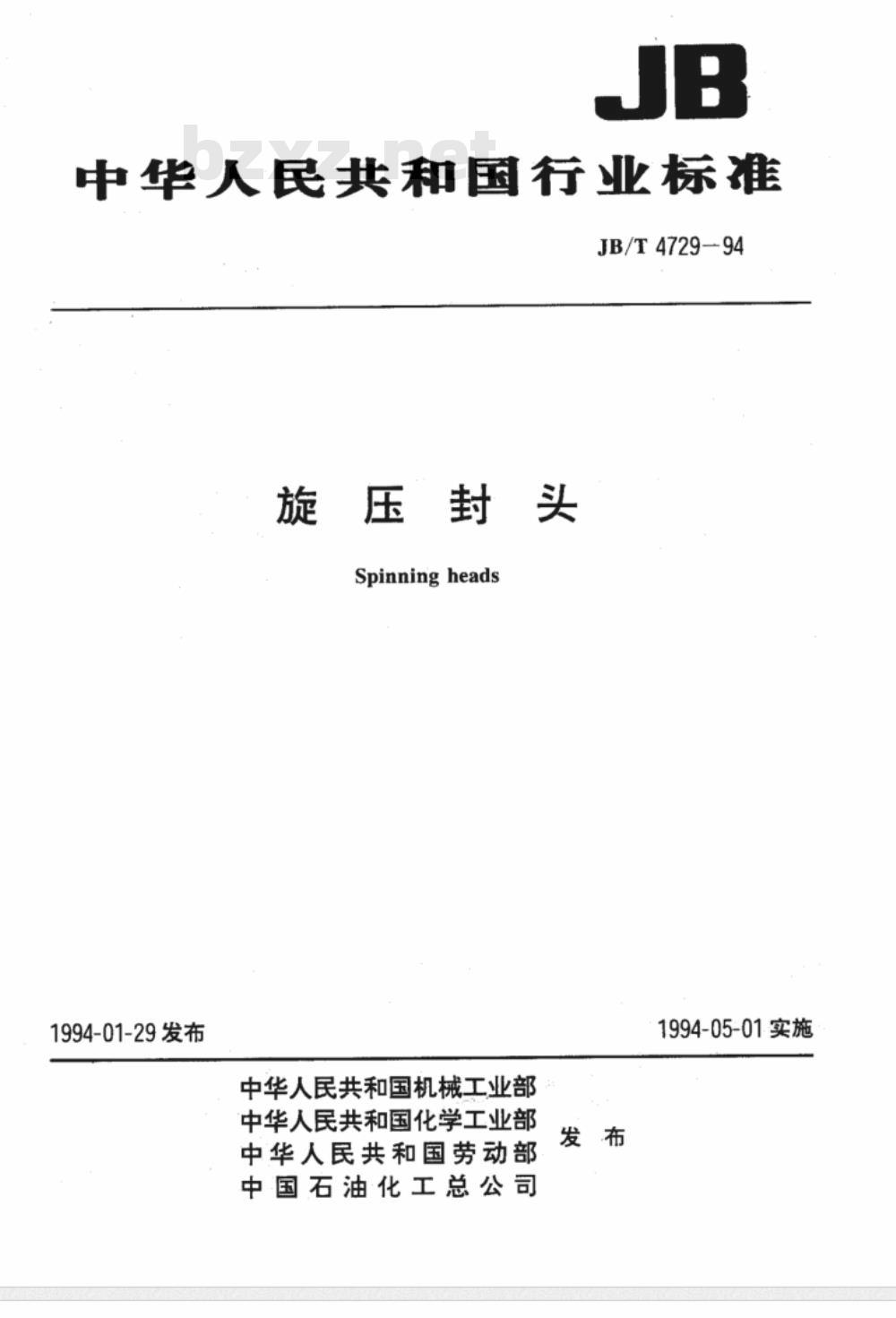 - JB/T 4729-1994 旋压封头