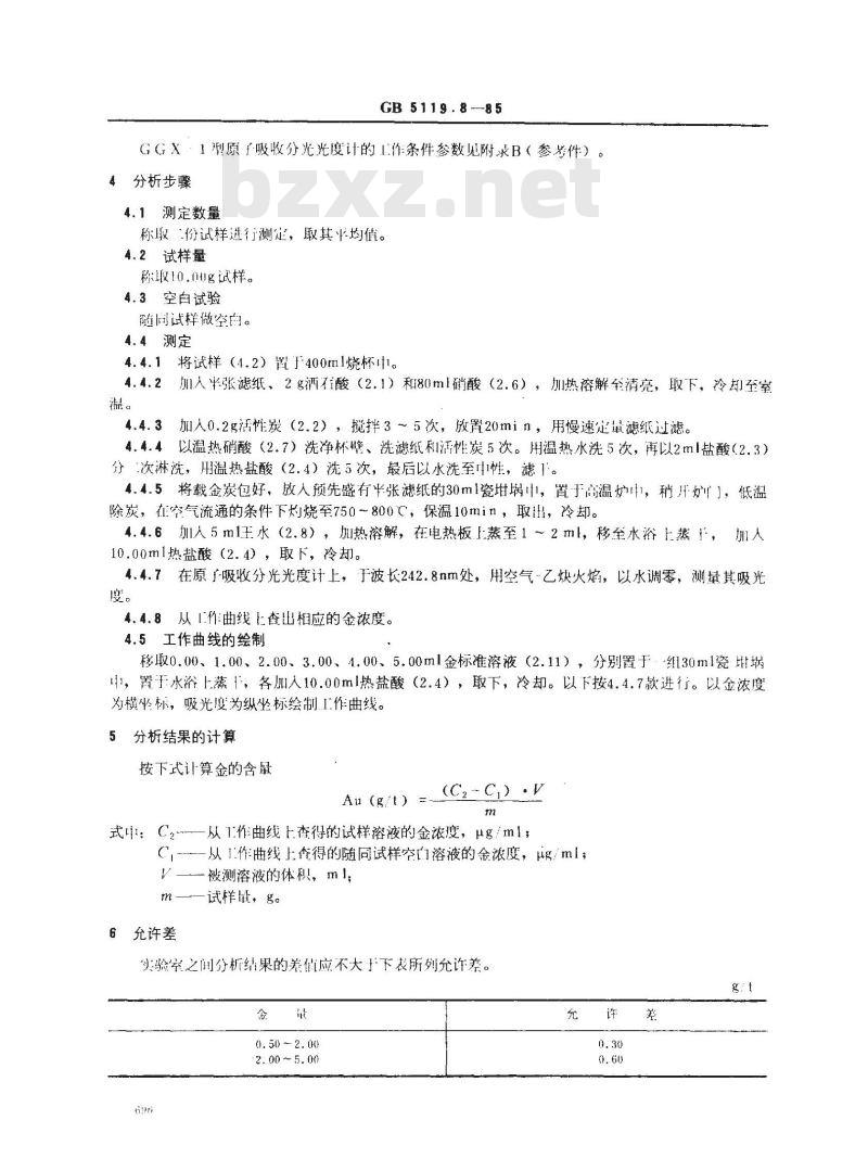 - GB 5119.8-1985 粗铅化学分析方法 原子吸收分光光度法测定金量
