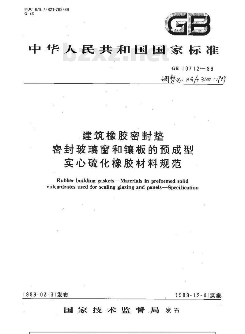 - HG 3100-1989 建筑橡胶密封垫密封玻璃窗和镶板的预成型实心硫化橡胶材料规范