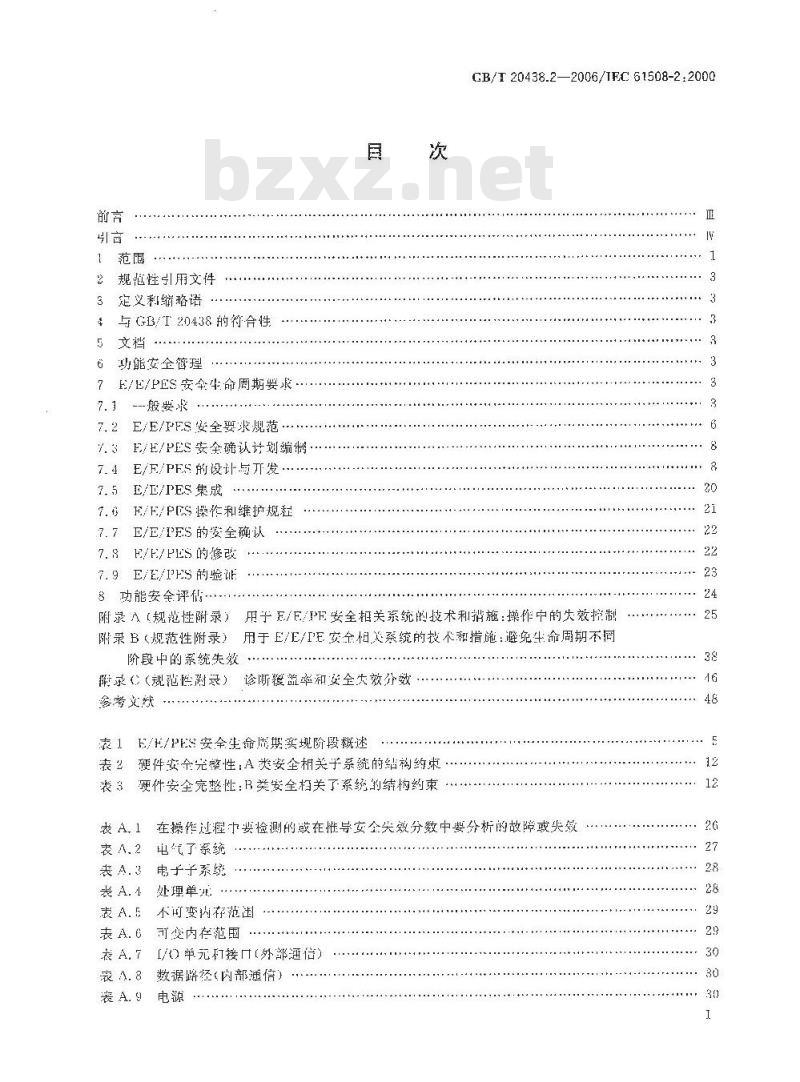 附录A(规范性附录)用于E/E/PE安全相关系统的技术利猎施:操作中的失效控制酬录B(规范性附录)用于E/E/IE安全相关系统的技术和指施:避免生命周期不同阶段中的系统失效