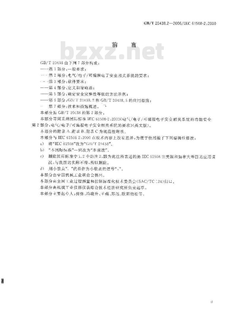 说,与我图的实际不符,所以删除。小)用小数点“”代替作为小数点的逗号“,”本部分中中国机械工业联合公提局。本部分H全国T.业过程测量和控制标准化技术委员会(SAC/TC24)口。本部分由机械工业仪器仪表综合技术经济研究所负资起草。本部分主要越单人:梅恪、冯晓升、平、郑、欧阳劲松等,/120438.2--2006/EC.61508-2:2000引高
