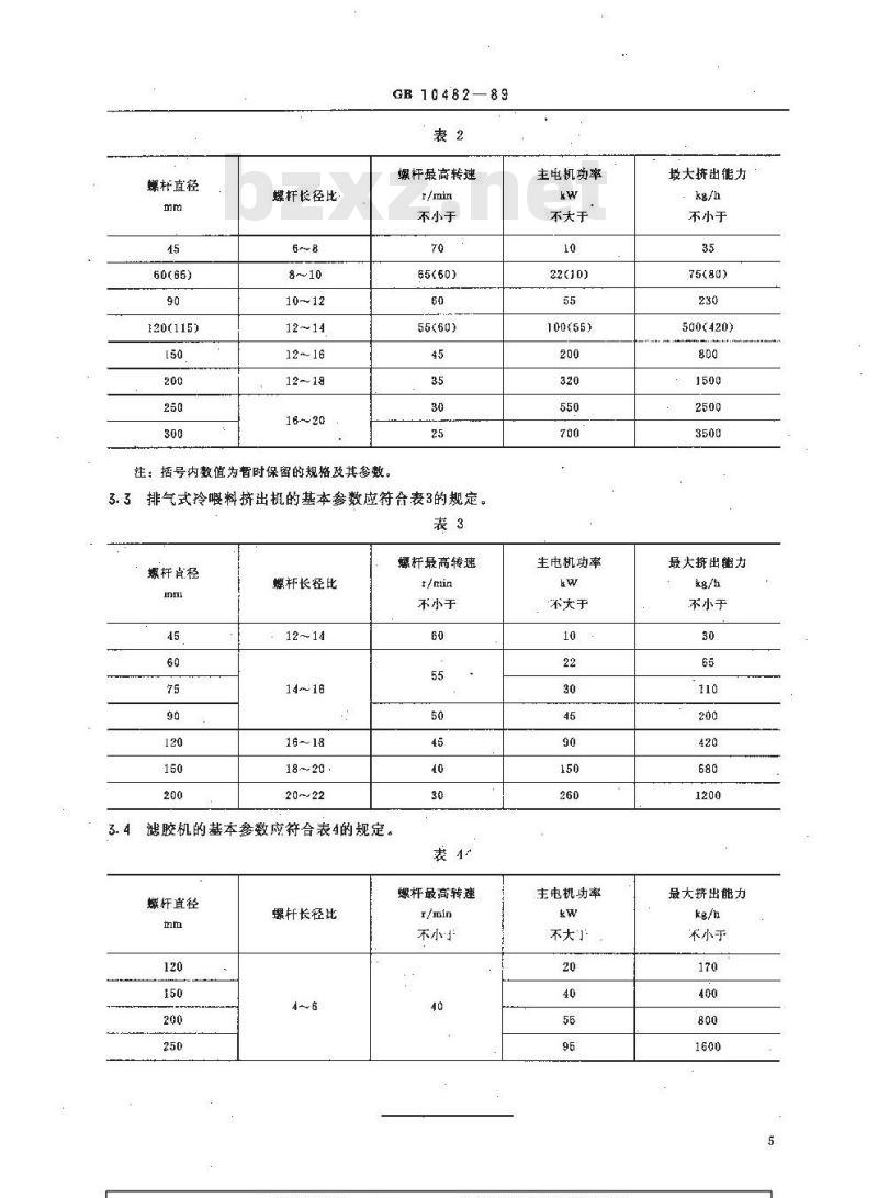 3.3排气式冷喂料挤出机的基本参数应符合表3的规定。表3