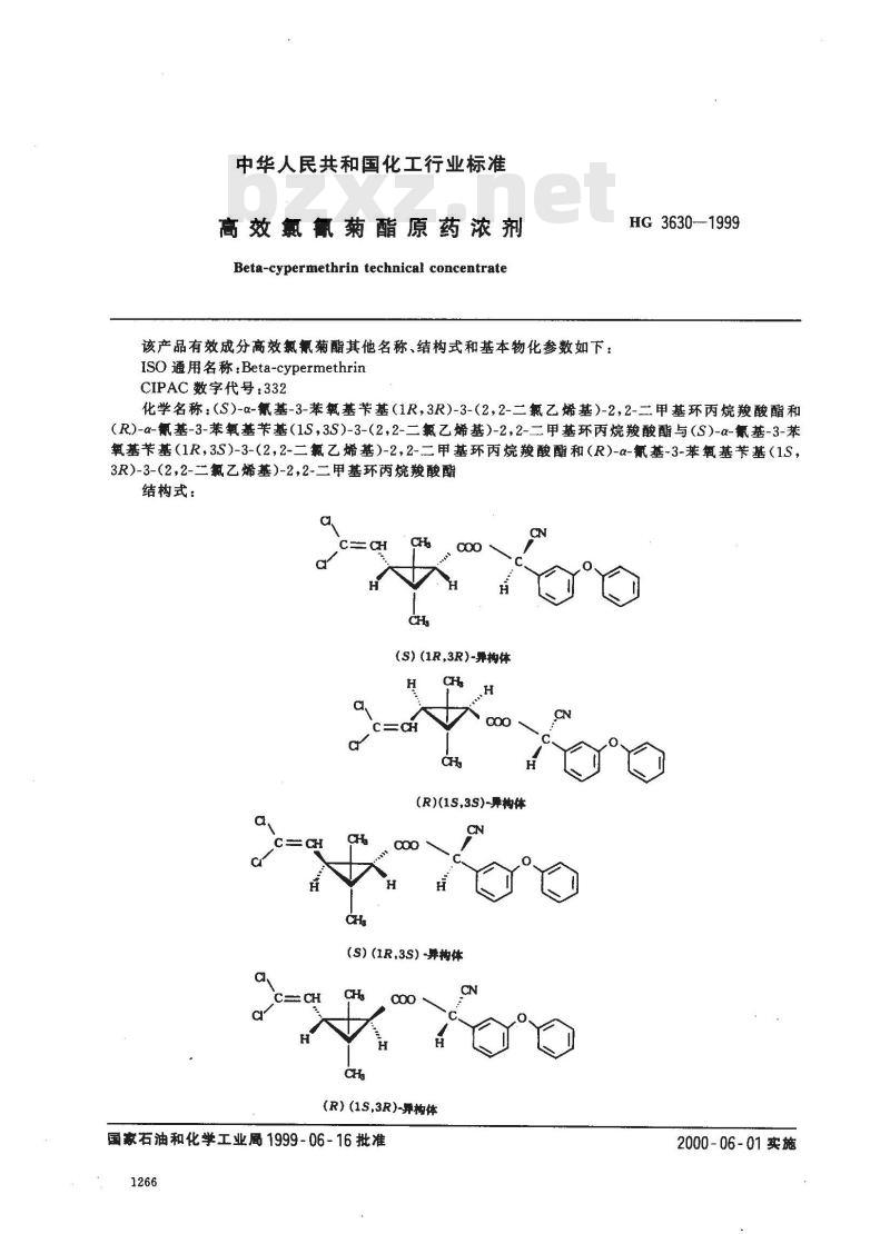 - HG 3630-1999 高效氯氰菊酯原药浓剂