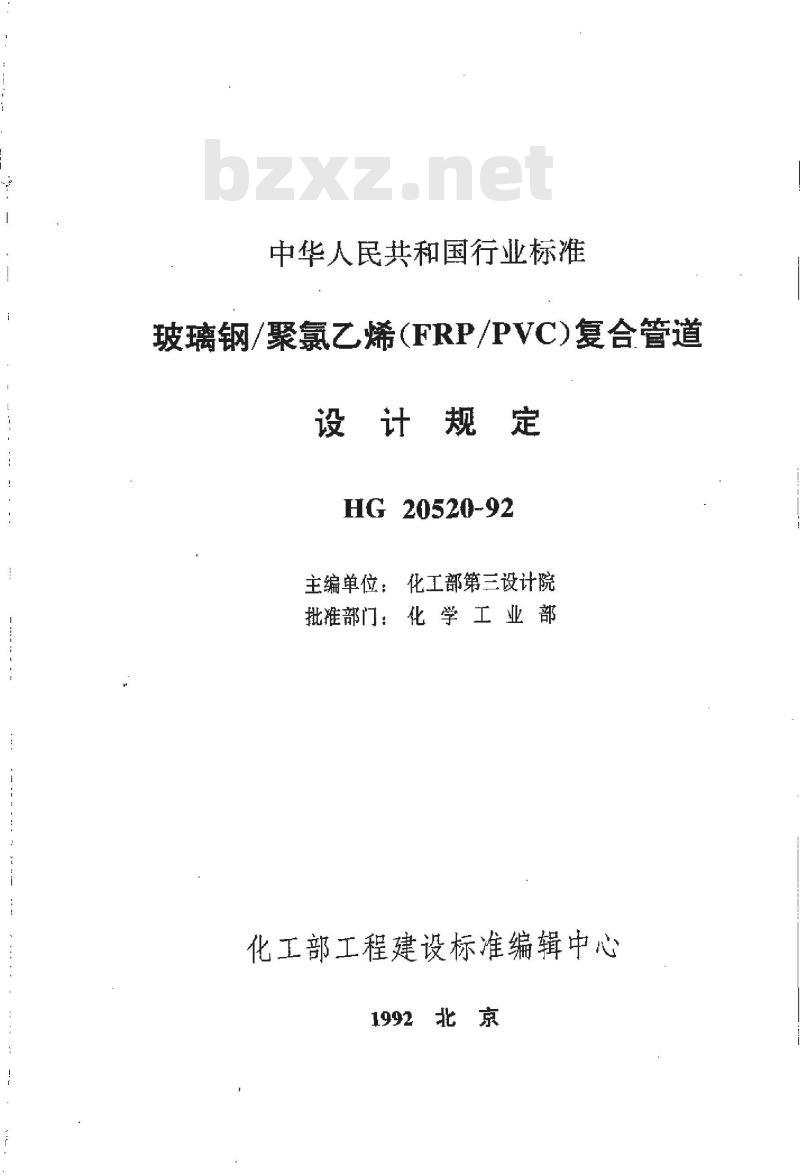 凡按《玻璃钢/聚氯乙烯(FRP/PVC)复合管和管件》(HGJ 515-87)标准进行加工、制造的管道或管道附件在设计、安装时应符合本规定。 HG 20520-1992 玻璃钢/聚氯乙烯(FRP/PVC)复合管道设计规定 HG20520-1992