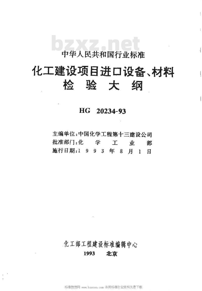 - HG20234-1993 化工建设项目进口设备、材料检验大纲